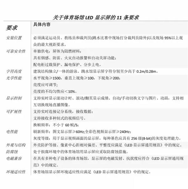 大致有11条要求,分别从显示屏的安装位置、可靠性、安全性、最大视距和字符高度、光学性能、显示控制、可扩展性电性能、平面显示屏显示字符、外观与结构、防腐蚀、电磁兼容与环境适应性提出了具体要求。